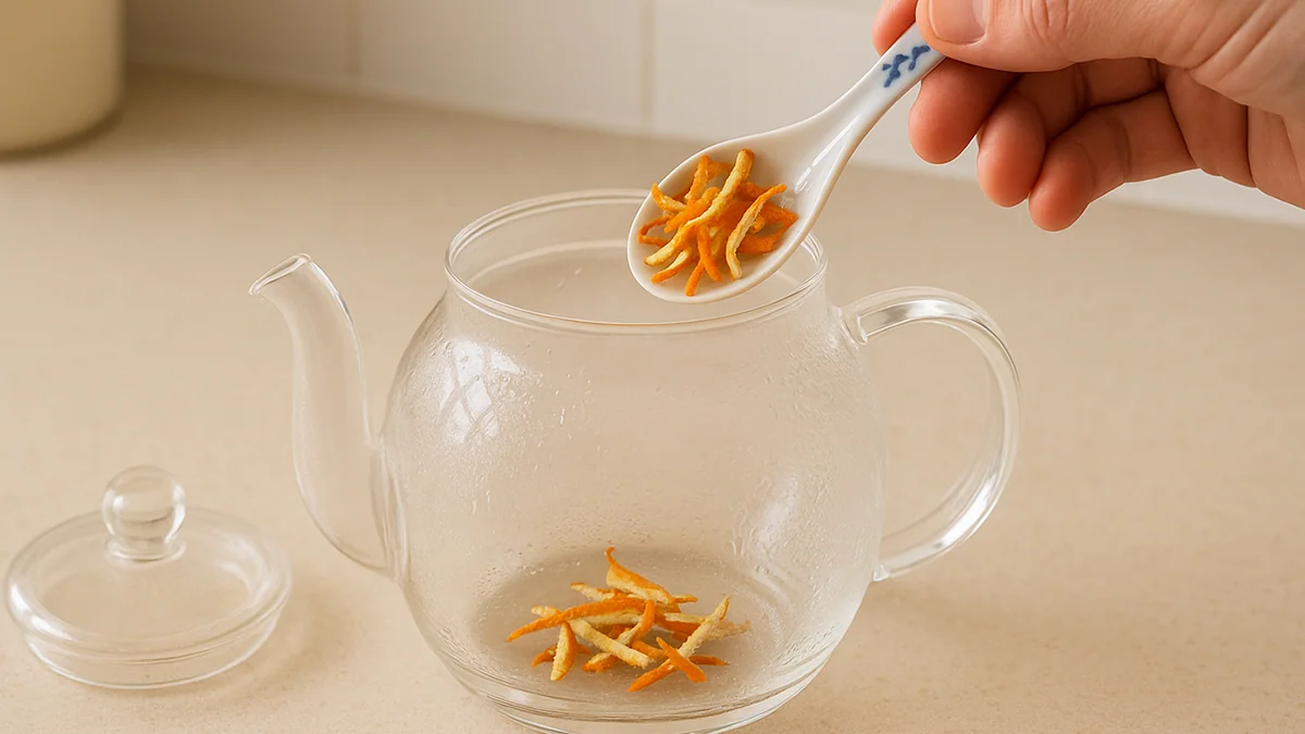 말린 귤껍질은 따뜻한 차로 우려 마시기 좋다. 깨끗이 씻은 껍질을 얇게 썰어 햇볕에 말린 뒤 뜨거운 물에 넣으면 은은한 향이 퍼진다. 이 귤피차는 기침이나 가래를 완화하고 소화를 돕는 데 효과적이다. 기호에 따라 꿀이나 오미자를 함께 넣으면 한층 부드럽고 향긋한 맛을 즐길 수 있다.