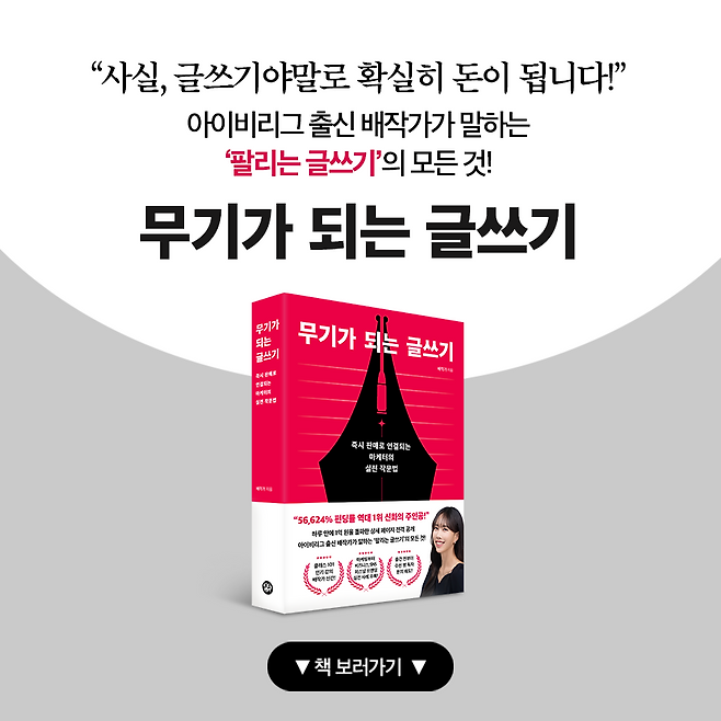 회사에서 '이렇게' 했더니... 연봉 8배 올린 소름돋는 방법.jpgby 북스피릿 책 보러가기 2024.05.23원문링크 바로가기직장생활부업억대연봉라이프스타일연봉글쓰기본 콘텐츠의 저작권은 저자 또는 제공처에 있으며, 이를 무단 이용하는 경우 저작권법 등에 따라 법적 책임을 질 수 있습니다.