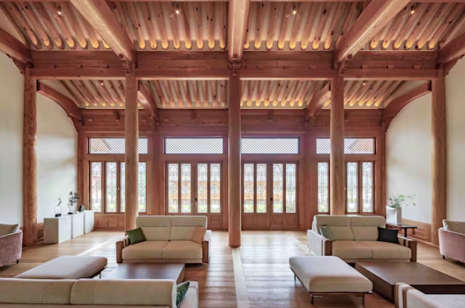 서울 도심만이 아니다. 강원도 영월 깊은 산속에는 ‘더 한옥 헤리티지(The Hanok Heritage)’가 있다. ‘더 한옥 헤리티지’는 종묘 정전을 모티브로 한 회랑 설계와 전통 목재 기법을 현대적 감성으로 재해석하여, 2024년 유네스코와 국제건축가협회가 주관하는 베르사유 건축상(Prix Versailles ) 호텔 부문에서 한옥 건축물 최초로1위를 차지하며 세계로부터 건축적 인정을 받았다.
