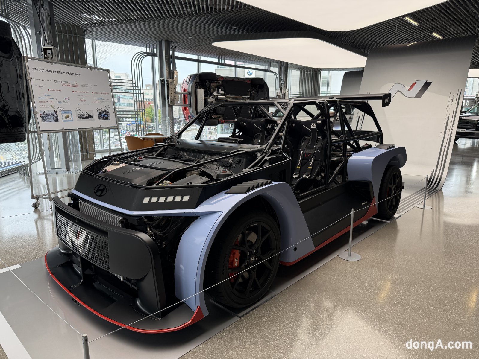 3층은 현대차 고성능 브랜드인 N 전용관으로 꾸며졌다. 레이스카 개발 철학을 보여주는 ‘RN24 롤링랩’, 맞춤형 성능 튜닝을 선보인 ‘N 퍼포먼스 파츠 월’, 최신 연구성과를 반영한 ‘아이오닉5 N DK 에디션’ 등이 전시돼 있다.