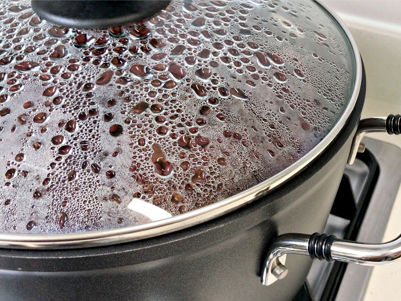뜸 들이기까지 끝나면 뚜껑을 열어요.