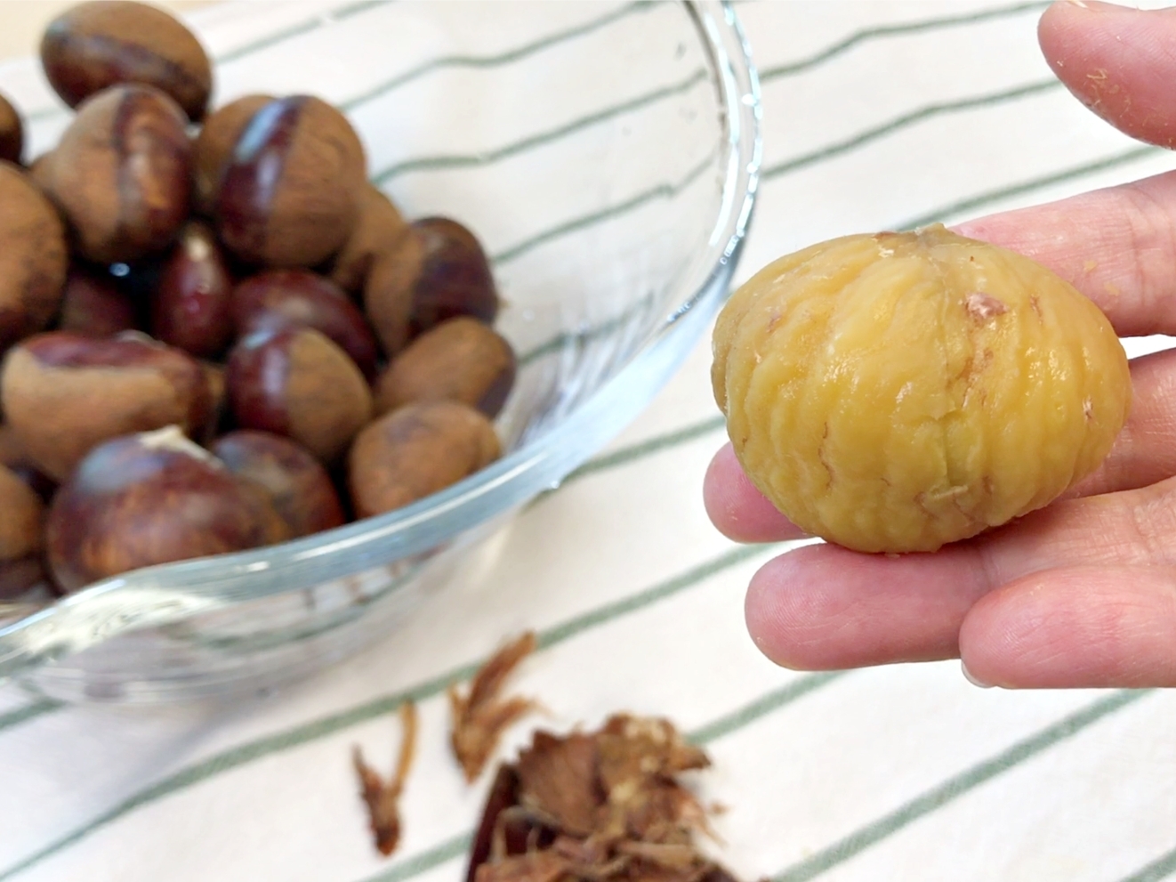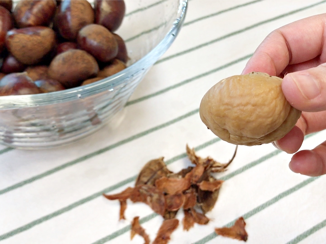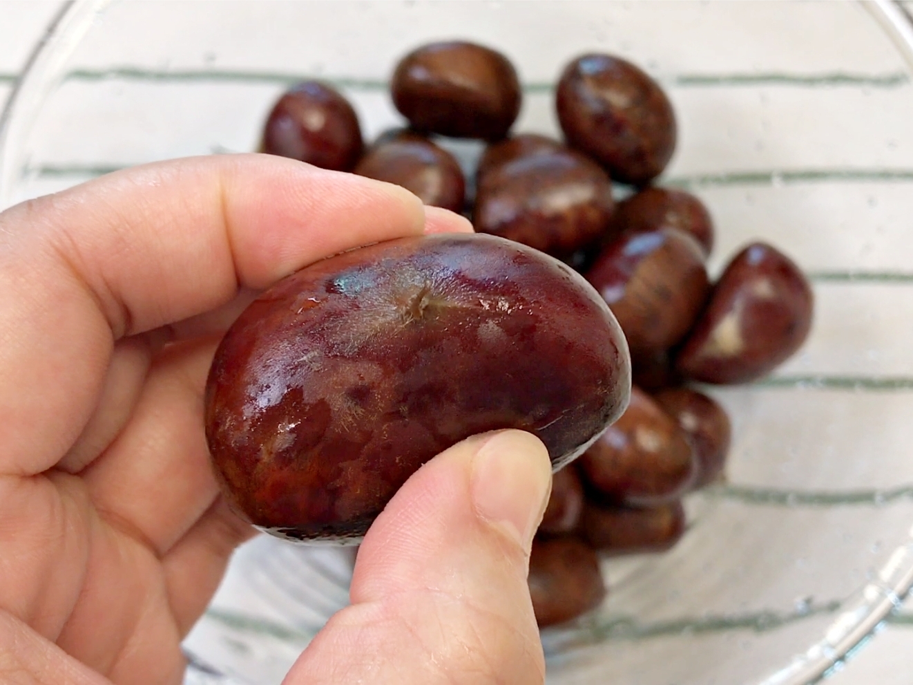 덕분에 딱딱했던 밤껍질이 살짝 부드럽게 느껴져요.