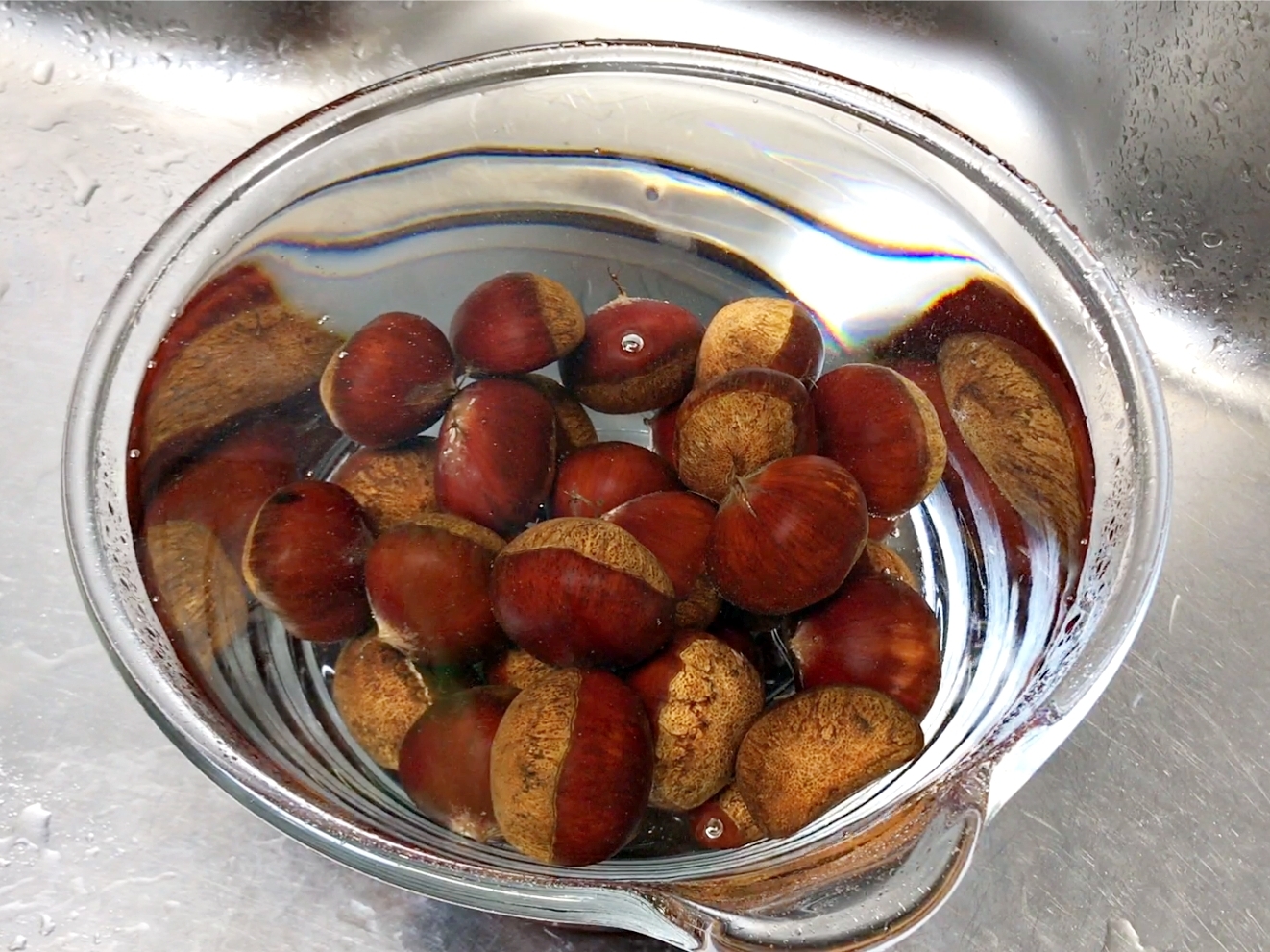 먼저 생밤을 찬물에 1시간 불려주세요.