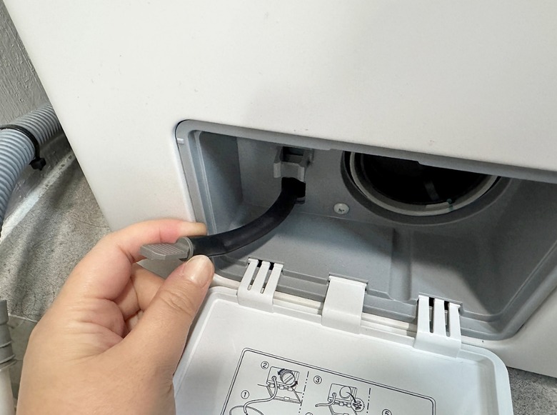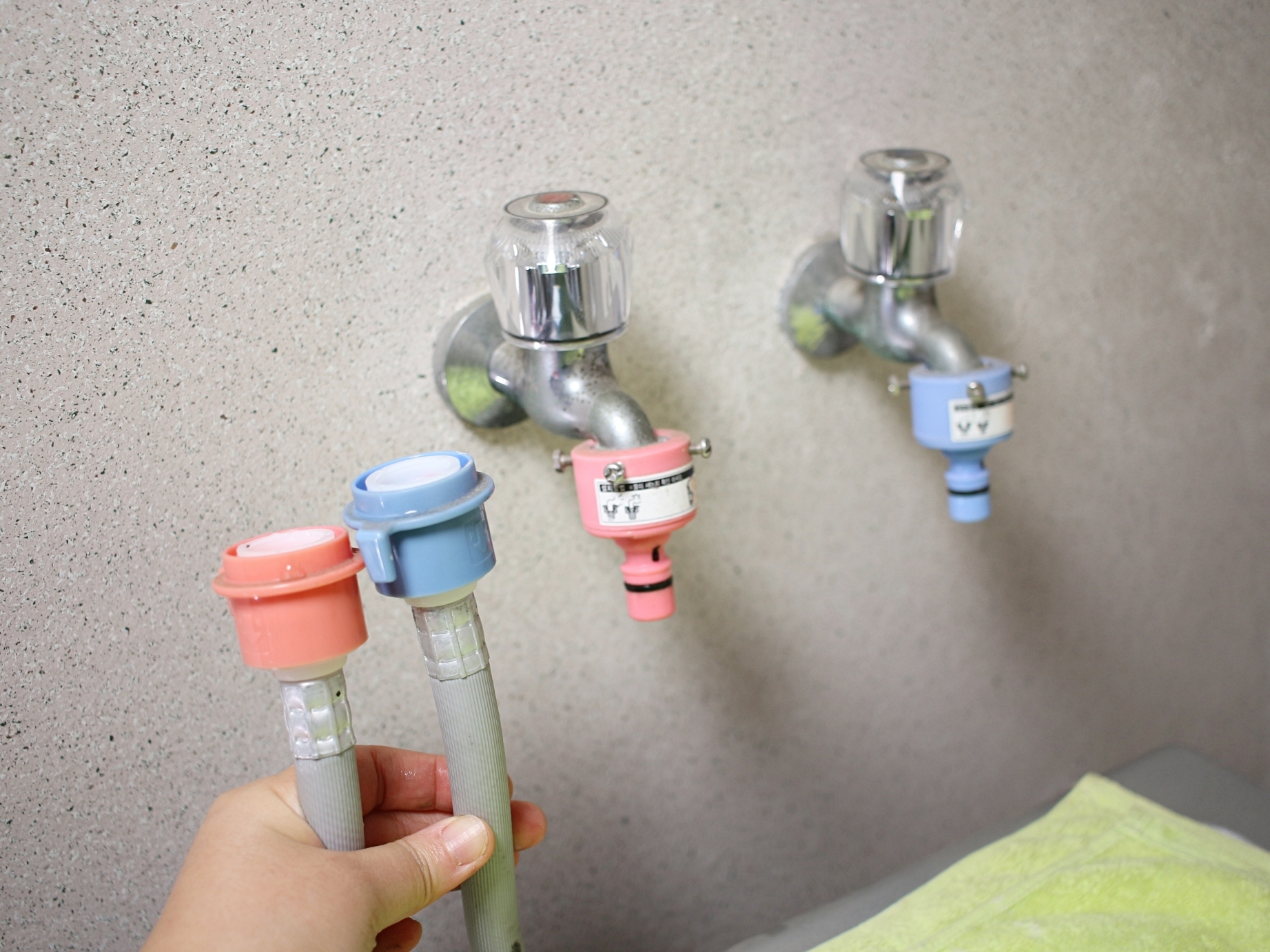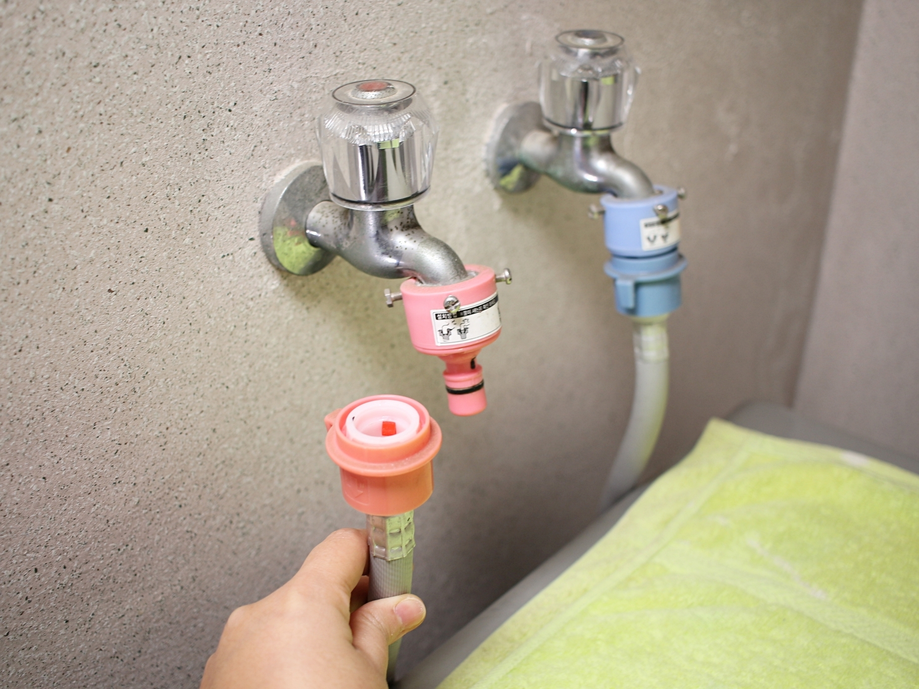 수전과 세탁기를 연결하는 호스를 빼 주시고요.