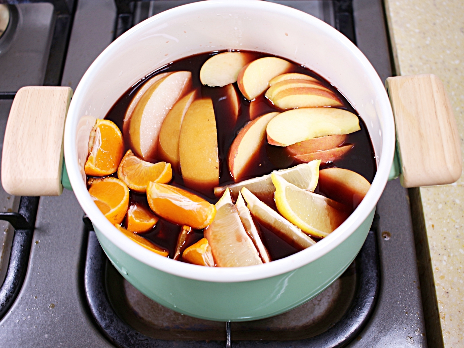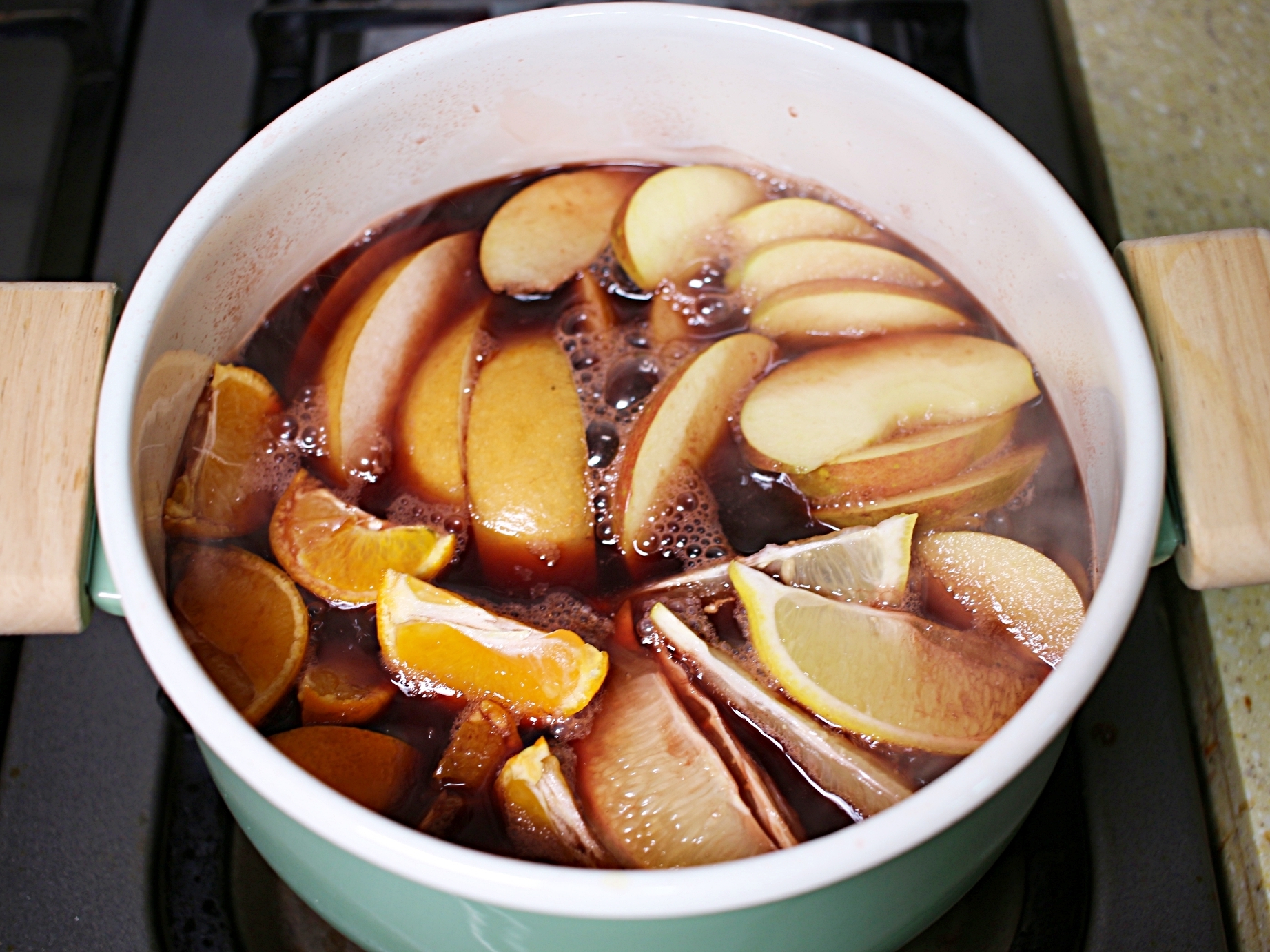 레드와인에 과일과 향신료를 넣어 데우면 끝.
