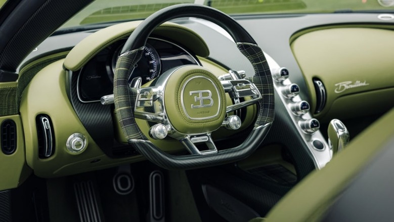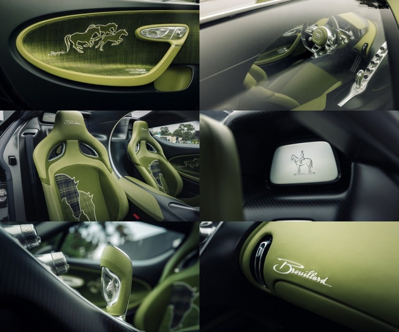 가장 인상적인 디테일은 오너를 위해 특별히 수놓은 말 자수 장식과, 순 알루미늄 블록에서 가공한 시프트레버입니다. 이 시프트레버 내부에는 에토레 부가티가 사랑한 말 브루야르의 미니어처 조각상이 들어 있어, 자동차와 말, 오너와 브랜드 간의 감성적 연결을 상징적으로 표현합니다.