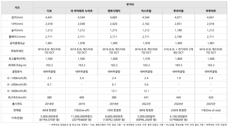 디자인, 소재, 구조에 이르기까지 모든 요소가 오너의 취향을 반영해 새롭게 탄생한 모델이죠. 브루야르의 디자인과 성능을 알아보고, 최근 부가티 한정판 하이퍼카를 총정리해 보겠습니다.