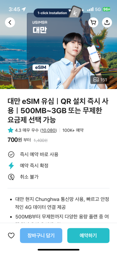 👇🏻 에디터가 사용한 대만 이심 예약 바로가기