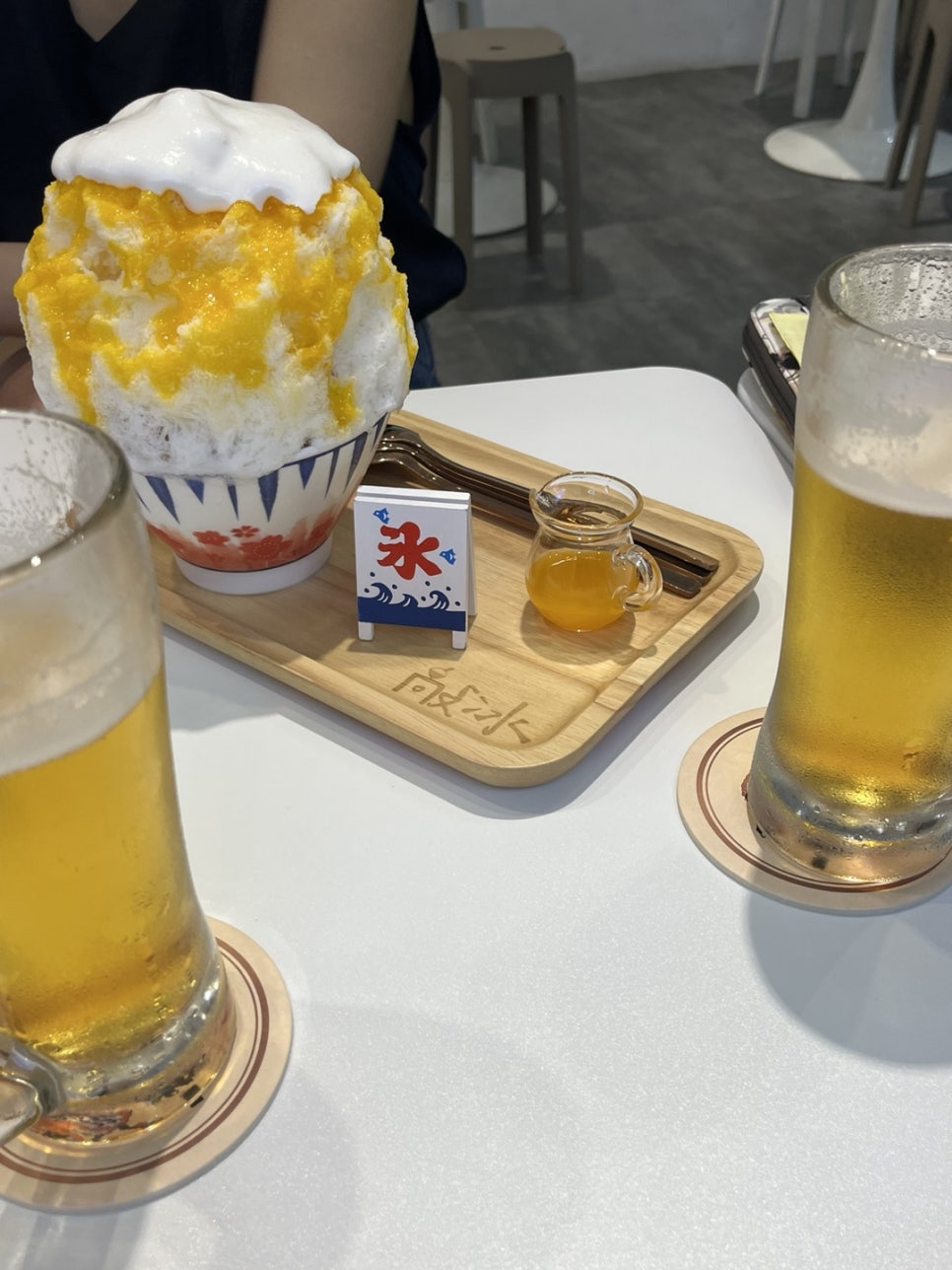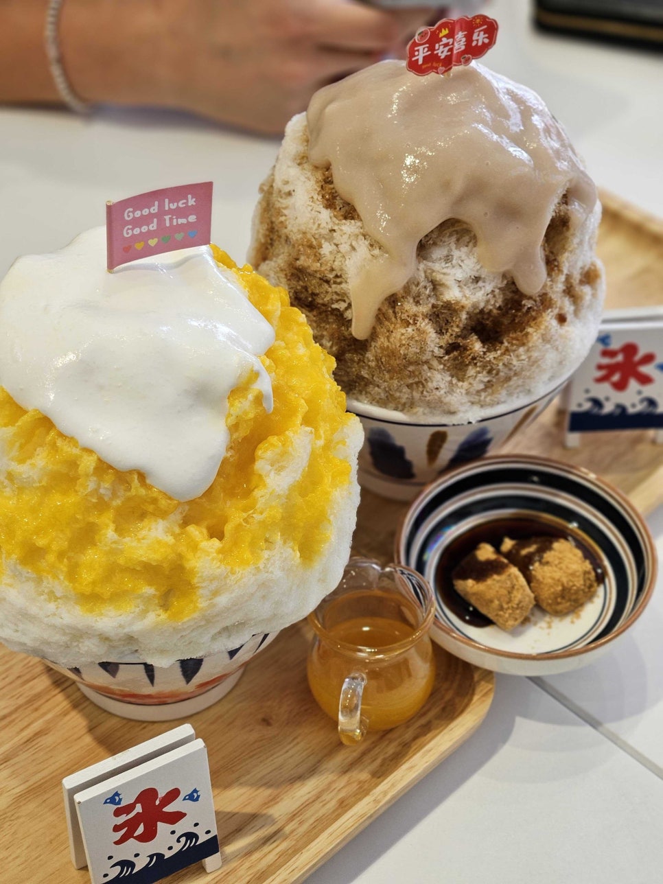 빙수 안에는 아이스크림, 망고, 그래놀라가