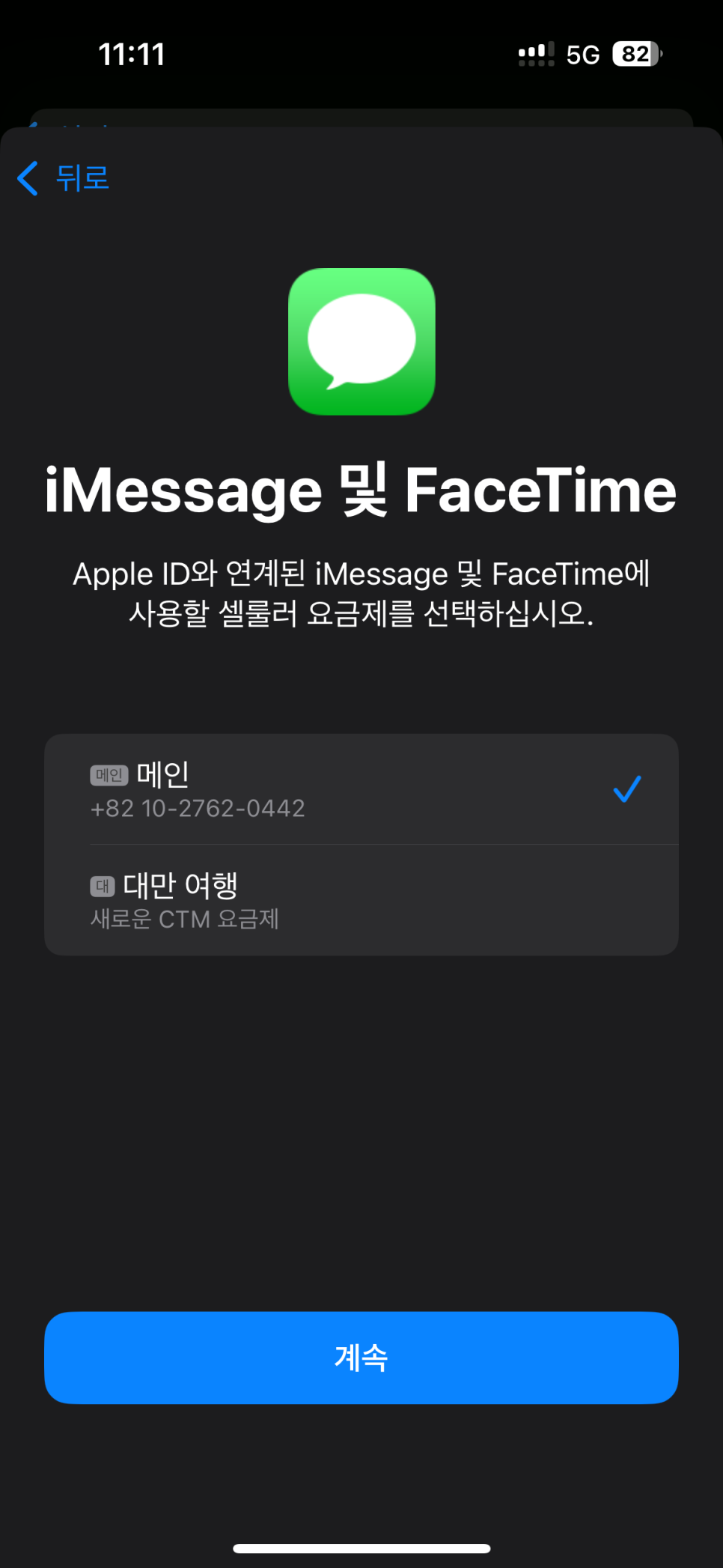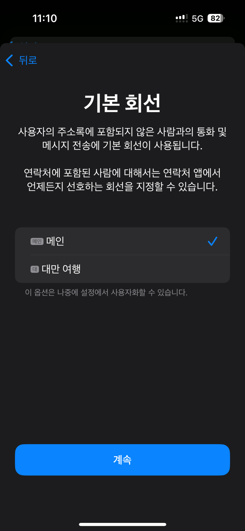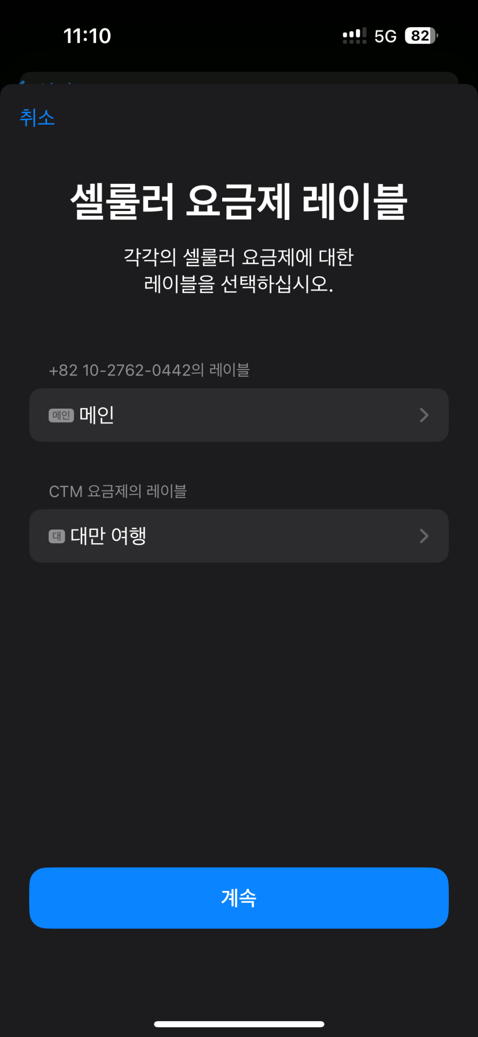 1️⃣ 설정 > 셀룰러 > 요금제에서 '대만 이심' 선택