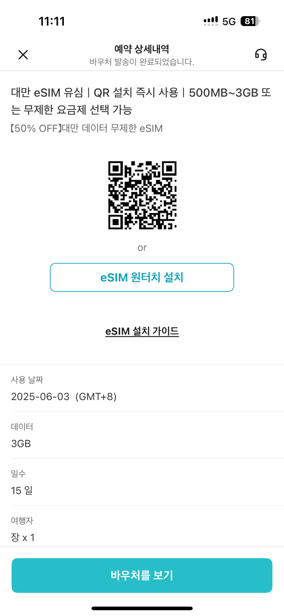 대만 eSIM 유심|QR 설치 즉시 사용|500MB~3GB 또는 무제한 요금제 선택 가능