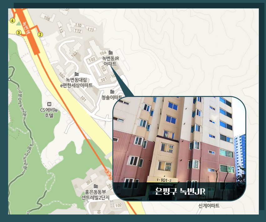 먼저 은평구 녹번동에 위치한 녹번JR아파트를 꼽을 수 있다. 341세대에 총 5개동으로 이루어진 이 아파트는 북한산 아래 좋은 공기 더불어 역세권까지 갖춘 최적의 조건을 보유하고 있다. 회사가 밀집되어 있는 종로까지 자동차로는 25분, 대중교통 이용 시 20분이 소요된다.