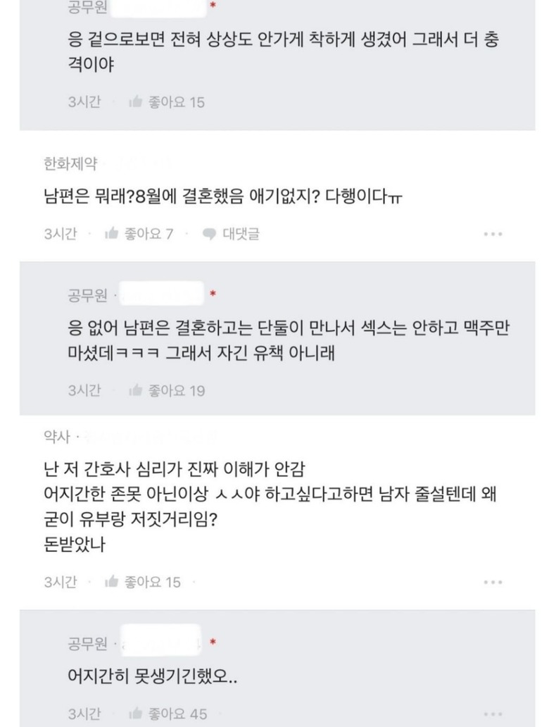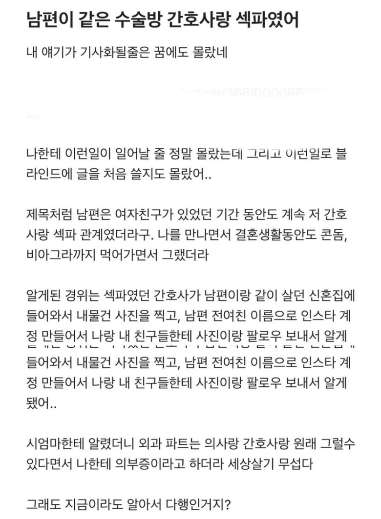 남편이 같은 수술방 간호사랑 섹ㅍr 였다