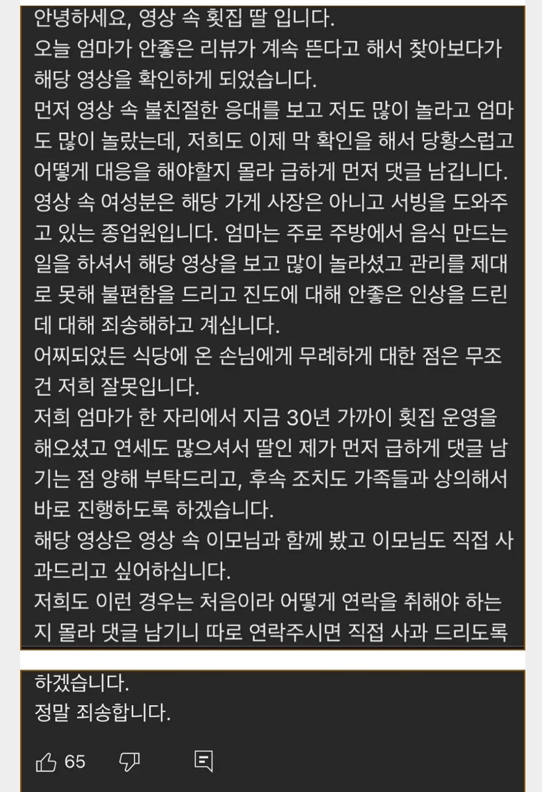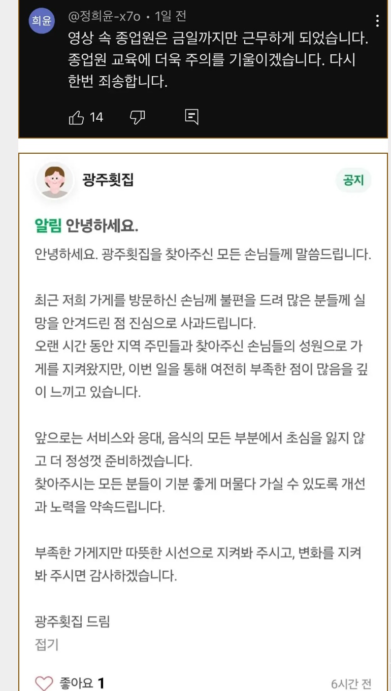 논란의 횟집 입장문 올라왔다...ㄷㄷby 뉴스낵 2025.10.05횟집가게횟집본 콘텐츠의 저작권은 저자 또는 제공처에 있으며, 이를 무단 이용하는 경우 저작권법 등에 따라 법적 책임을 질 수 있습니다.