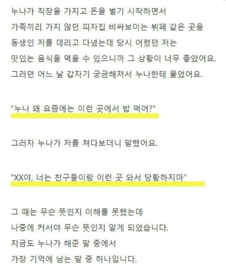 누나가 취직하더니 갑자기 비싼밥을 사주는거야by 뉴스낵 2025.10.29친누나가족취직본 콘텐츠의 저작권은 저자 또는 제공처에 있으며, 이를 무단 이용하는 경우 저작권법 등에 따라 법적 책임을 질 수 있습니다.