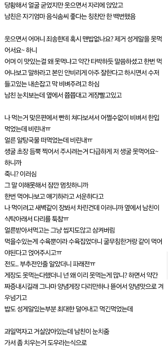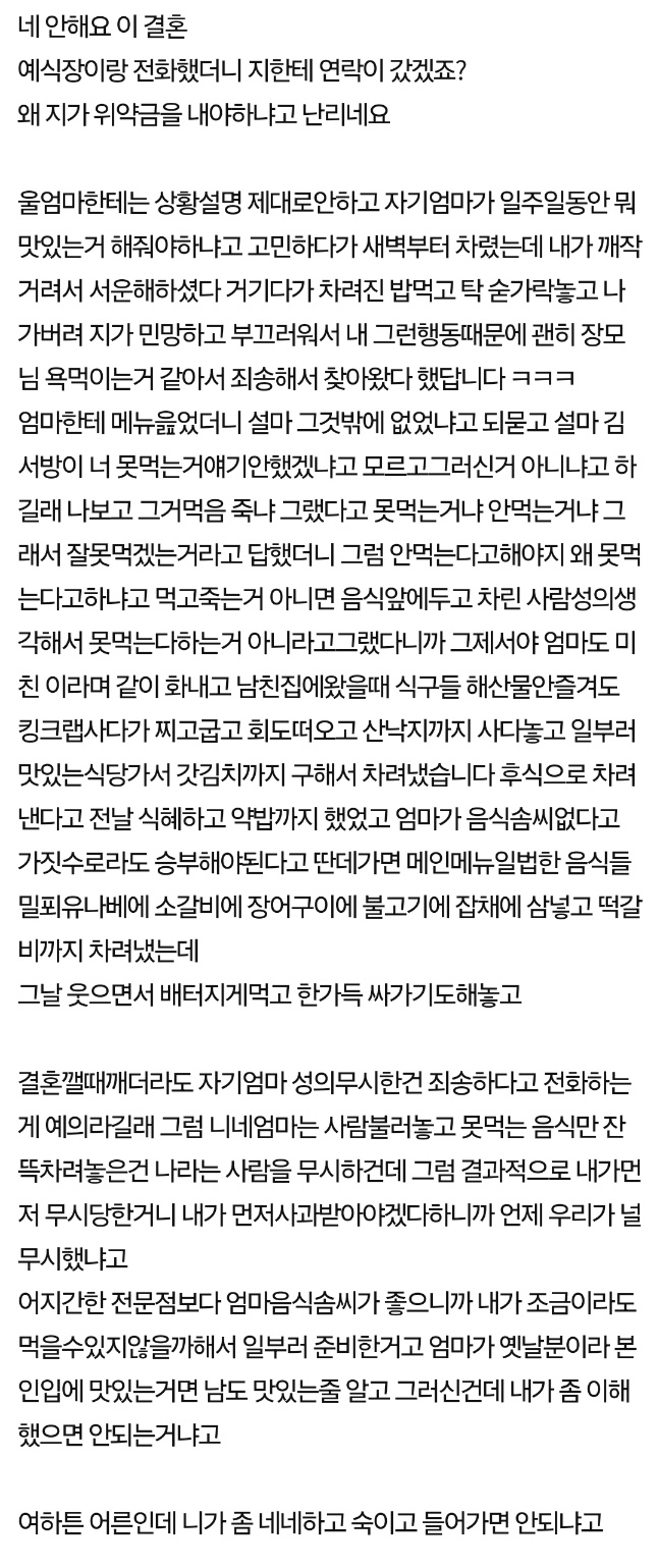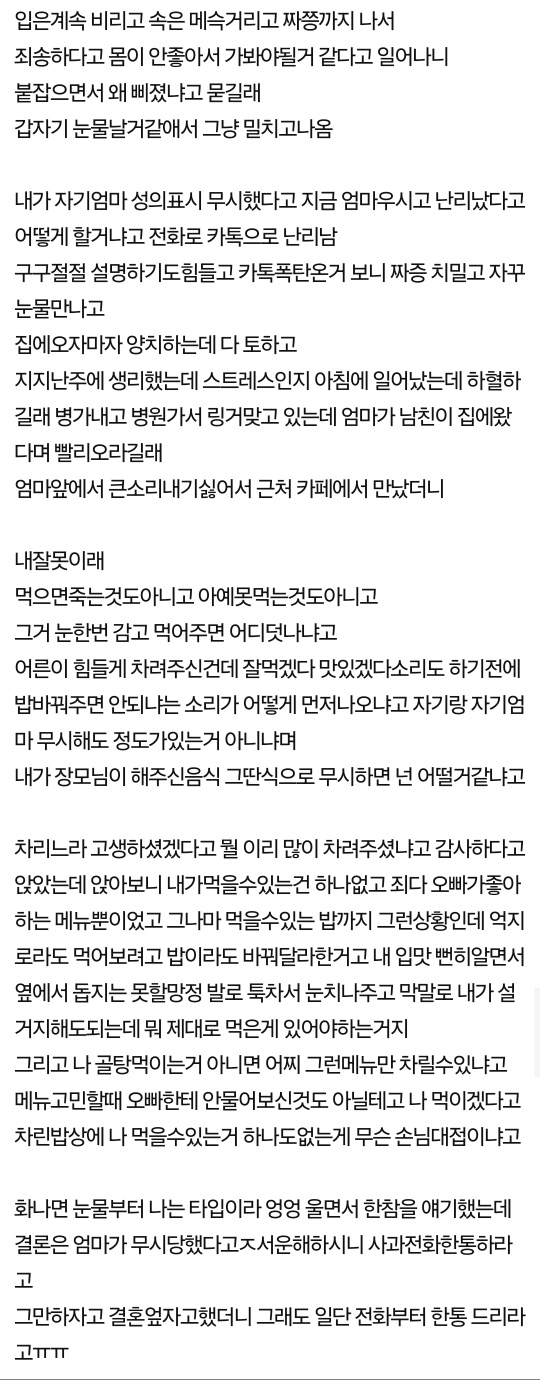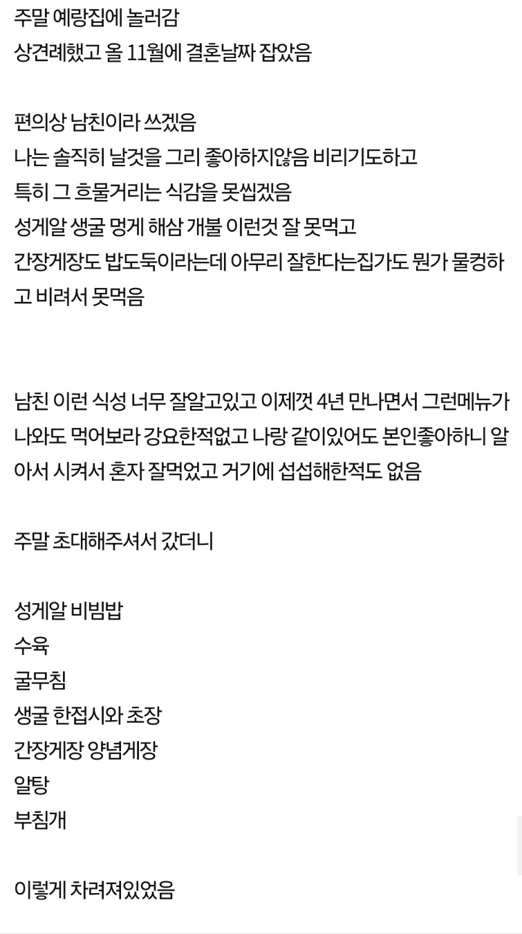 못먹는 음식만 차려놓고, 안먹었다고 파혼당했어요