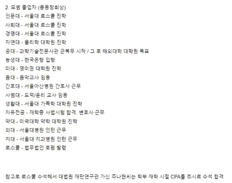 서울대 수석졸업자들의 진로 현황수준 ....ㅎㄷㄷby 뉴스낵 2025.06.30서울대진로본 콘텐츠의 저작권은 저자 또는 제공처에 있으며, 이를 무단 이용하는 경우 저작권법 등에 따라 법적 책임을 질 수 있습니다.