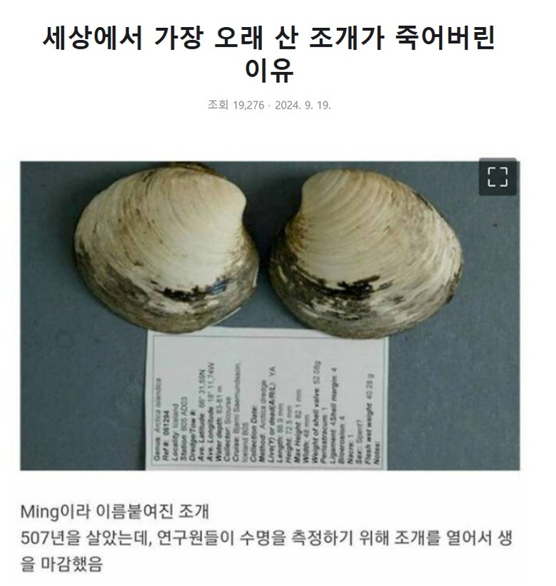 세상에서 가장 오래 산 조개가 죽어버린 이유...by 뉴스낵 인간이 미안해..2025.10.17조개가죽은이유조개본 콘텐츠의 저작권은 저자 또는 제공처에 있으며, 이를 무단 이용하는 경우 저작권법 등에 따라 법적 책임을 질 수 있습니다.