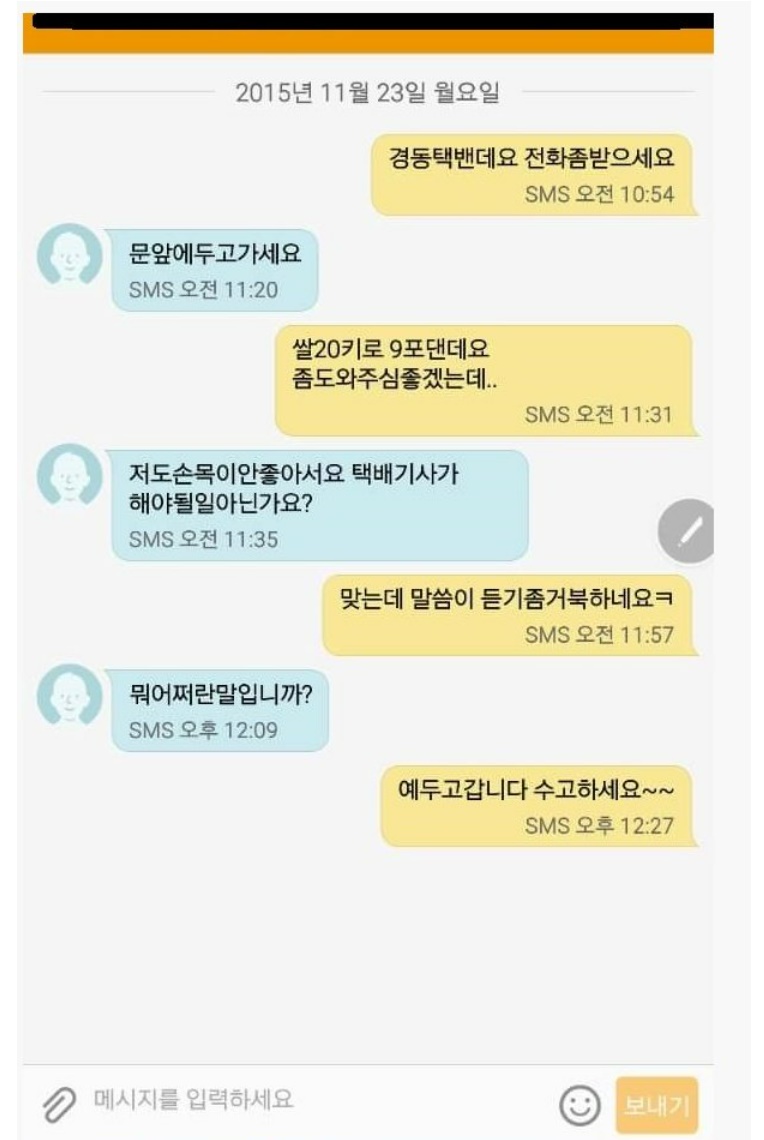 쌀 180kg 택배시켰더니 기사한테 문자옴...ㄷㄷㄷ