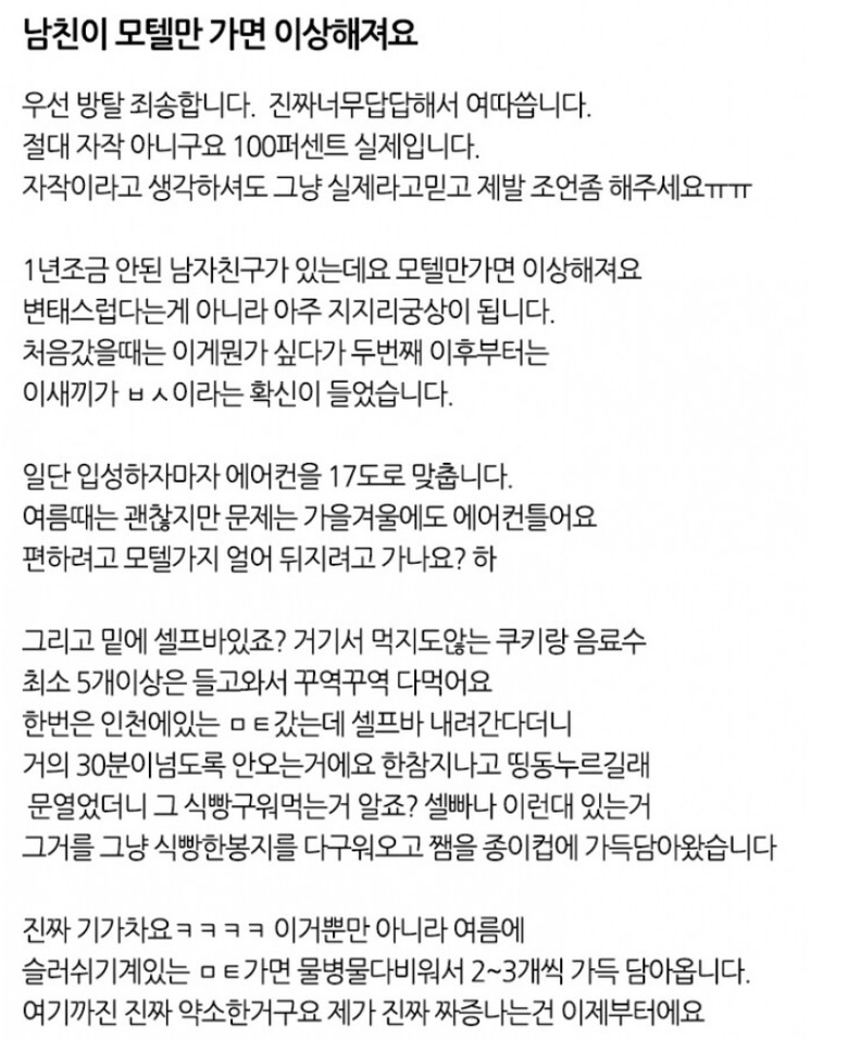 진짜 미치겠어요.. 남친이 모텔만 가면 이상해져요by 뉴스낵 2025.09.25모텔남자친구행동남자친구본 콘텐츠의 저작권은 저자 또는 제공처에 있으며, 이를 무단 이용하는 경우 저작권법 등에 따라 법적 책임을 질 수 있습니다.