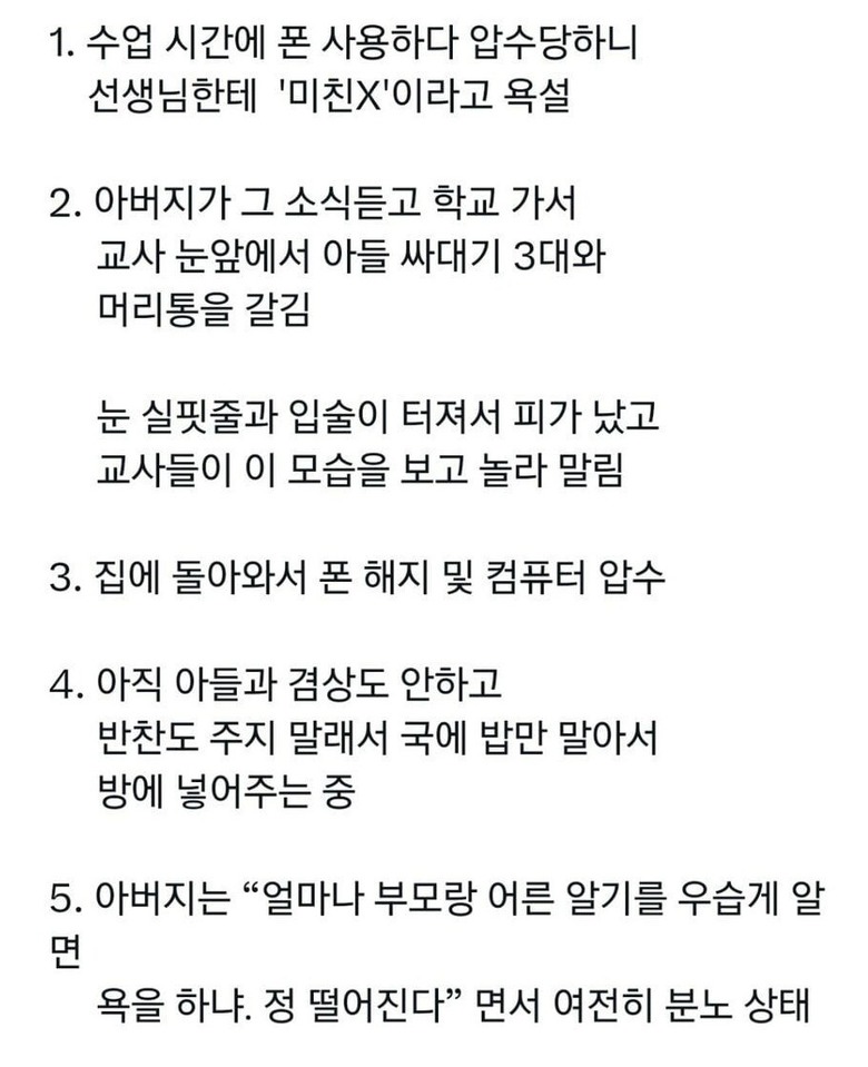 ㅁ친X 소리에 꼭ㅈㅣ 돌아간 아버지by 뉴스낵 2025.11.01아들가정교육아빠본 콘텐츠의 저작권은 저자 또는 제공처에 있으며, 이를 무단 이용하는 경우 저작권법 등에 따라 법적 책임을 질 수 있습니다.