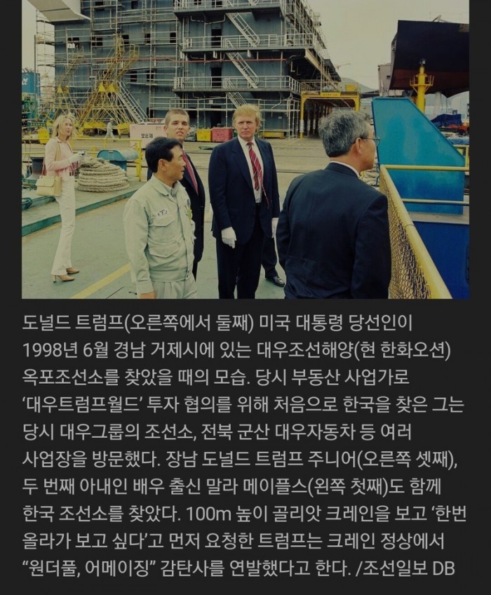 트럼프가 우리나라 조선업에 제대로 꽂혀버린 이유by 뉴스낵대우 김우중 회장이 트럼프랑 사업할 때대우 조선소 투어 시켜줬음2025.03.10한국조선업트럼프옥포조선소조선업본 콘텐츠의 저작권은 저자 또는 제공처에 있으며, 이를 무단 이용하는 경우 저작권법 등에 따라 법적 책임을 질 수 있습니다.