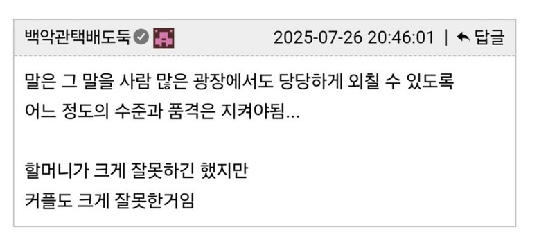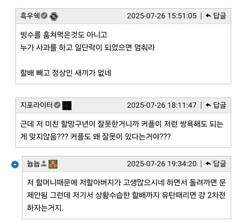 팥빙수 집에서 젊은 커플 vs 노부부 싸움by 뉴스낵 2025.11.04노부부커플싸움팥효능본 콘텐츠의 저작권은 저자 또는 제공처에 있으며, 이를 무단 이용하는 경우 저작권법 등에 따라 법적 책임을 질 수 있습니다.