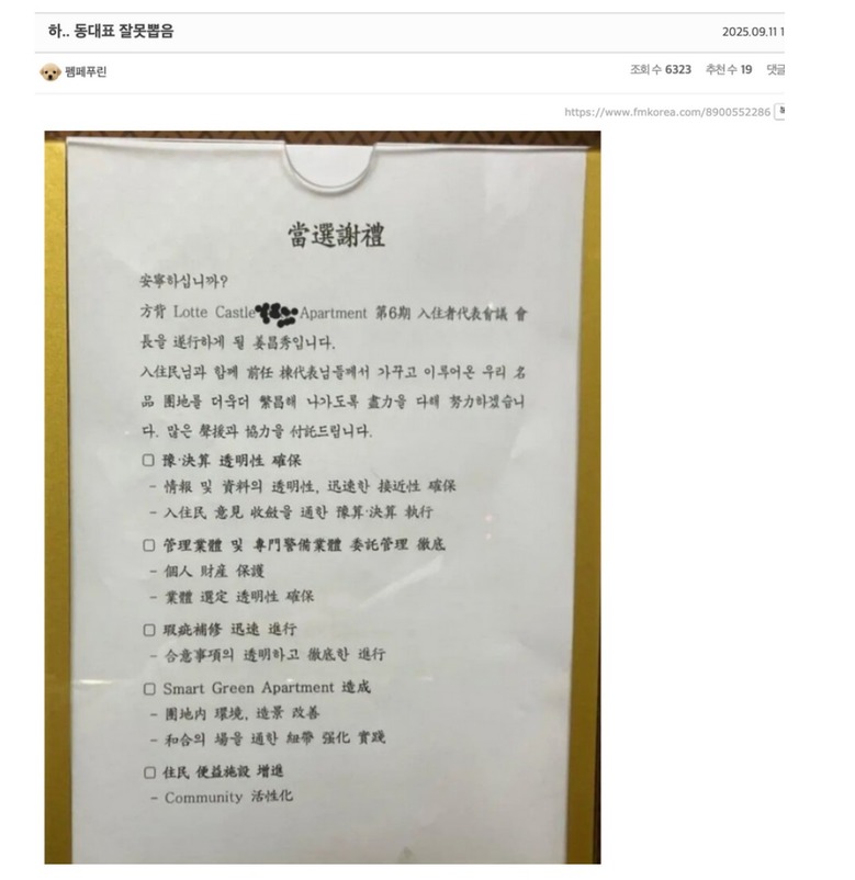 하.. 동대표 잘못뽑음by 뉴스낵 2025.10.13아파트동대표본 콘텐츠의 저작권은 저자 또는 제공처에 있으며, 이를 무단 이용하는 경우 저작권법 등에 따라 법적 책임을 질 수 있습니다.