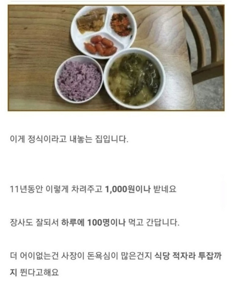1000원 짜리 논란의 식당 ㄷㄷby 뉴스낵 2025.09.271000원1000원식당본 콘텐츠의 저작권은 저자 또는 제공처에 있으며, 이를 무단 이용하는 경우 저작권법 등에 따라 법적 책임을 질 수 있습니다.