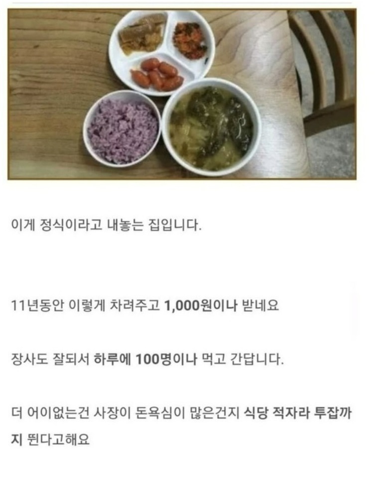 1000원 짜리 논란의 식당 ㄷㄷby 뉴스낵 2025.10.261000원1000원식당식당본 콘텐츠의 저작권은 저자 또는 제공처에 있으며, 이를 무단 이용하는 경우 저작권법 등에 따라 법적 책임을 질 수 있습니다.