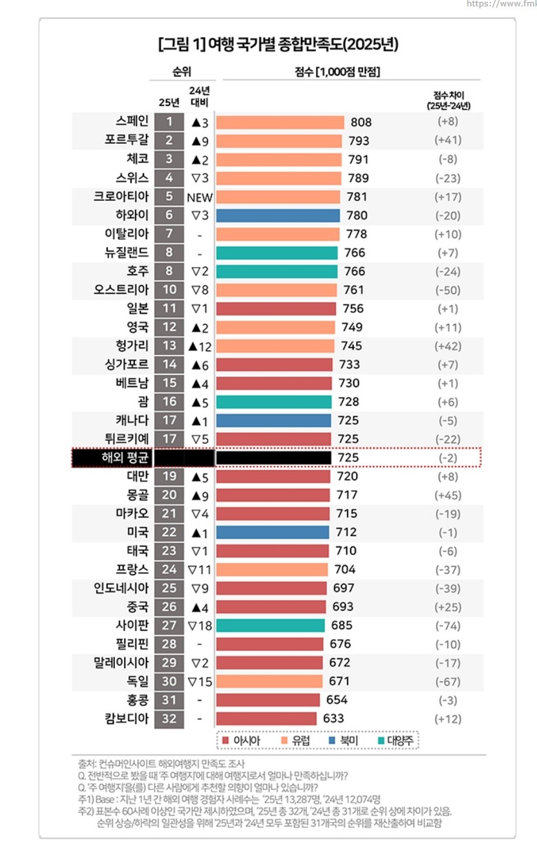 2025년 한국인이 뽑은 만족도 높은 해외여행지 순위by 뉴스낵 2025.11.01여행지추천여행지순위여행지본 콘텐츠의 저작권은 저자 또는 제공처에 있으며, 이를 무단 이용하는 경우 저작권법 등에 따라 법적 책임을 질 수 있습니다.