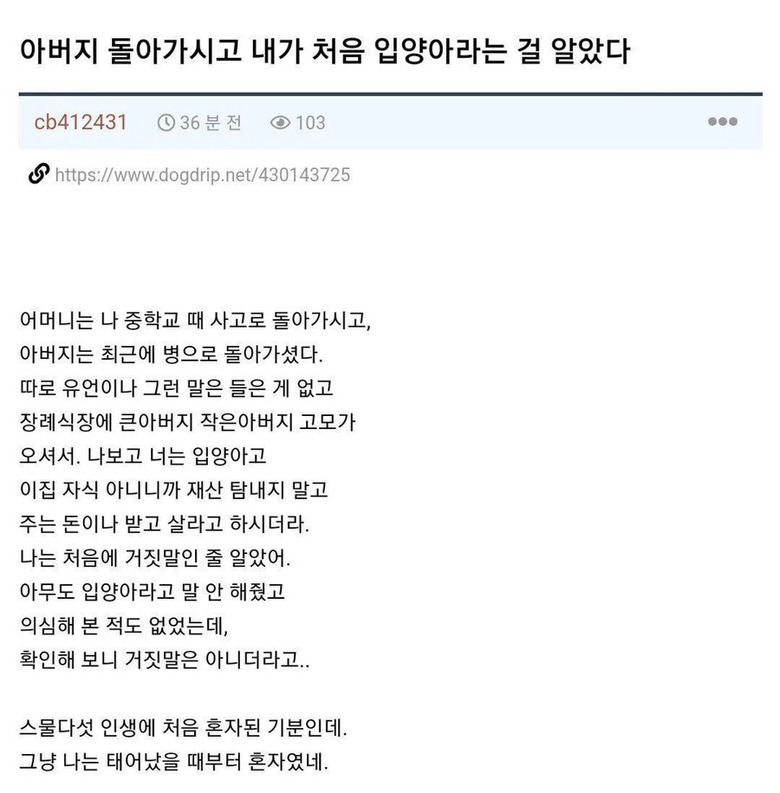 25살에 입양아인줄 알게되었던 사람 후기by 뉴스낵 2025.09.22입양아본 콘텐츠의 저작권은 저자 또는 제공처에 있으며, 이를 무단 이용하는 경우 저작권법 등에 따라 법적 책임을 질 수 있습니다.