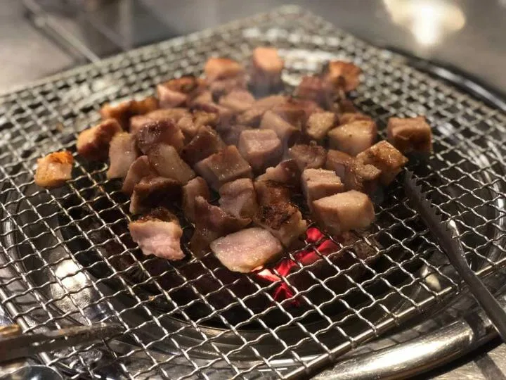 A. 납작하게 펼쳐 구운 대구식 돼지막창이 대표 메뉴입니다. 숯불에 구워 기름기는 빠지고 쫀득한 식감이 살아 있습니다.