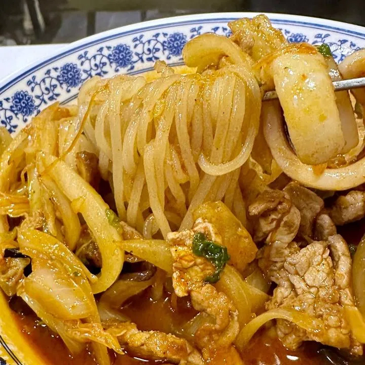 양파를 중심으로 한 채소들을 넉넉히 넣어 볶아 육수에 달큰한 양파의 맛이 감돌면서 불향이 살아있다. 비주얼만 봐서는 묵직해보이는 육수지만 맛보면 텁텁하지 않고 개운한 맛이 특징. 간이 어느 정도 있는 편이라 면이나 밥과 함께 먹으면 밸런스가 맞다.
