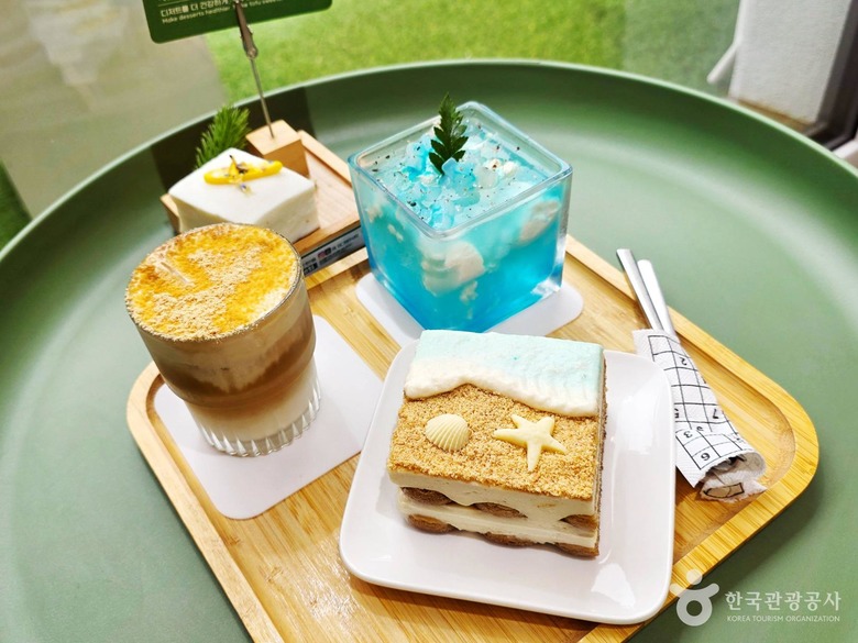 대표 메뉴인 오션 두부티라미수는 부드러운 두부와 쌉싸름한 커피가 어우러지고, 모래사장을 표현한 볶은 콩가루가 고소함을 더한다. 초당두부 크림라떼는 단짠의 조화가 매력적인데, 두부와 히말라야산 핑크솔트 덕분이다. 강릉 바다의 맛을 상상하며 만들었다는 두부오션드링크는 두부와 코코넛 알갱이가 맛과 식감을 더해 먹는 즐거움을 준다.