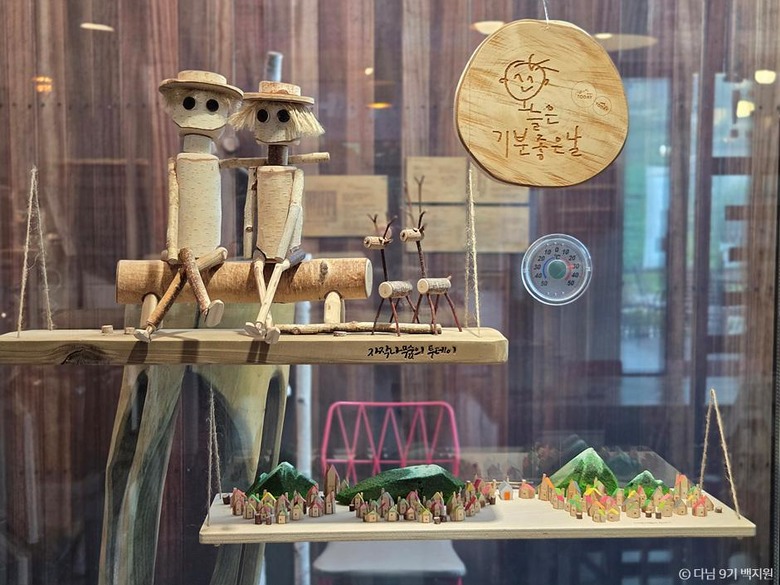 내부에는 사장님이 직접 제작한 자작나무 작품들이 전시되어 있어요.