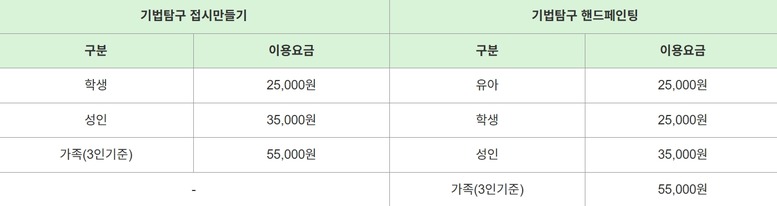 ✔ 이용요금 : 체험별 상이합니다.