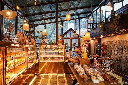 이진상회는 우리 쌀로 만든 빵을 맛볼 수 있는 대형 베이커리 카페예요☕