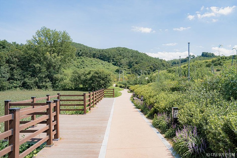 저수지를 한 바퀴 돌아볼 수 있는 산책로도 잘 조성되어 있는데요.