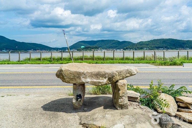 ![]() 빵집 간판을 대신하는 고인돌 조형물 |