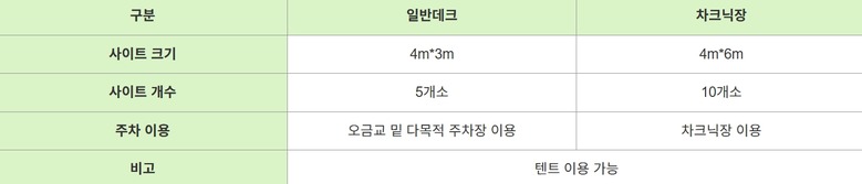 ※일반 야영지의 주차 이용요금은 별도입니다.