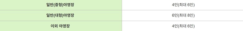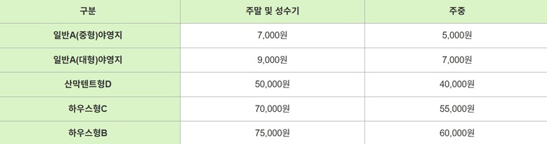 · 일반 야영장 : 당일 14:00~익일 12:00