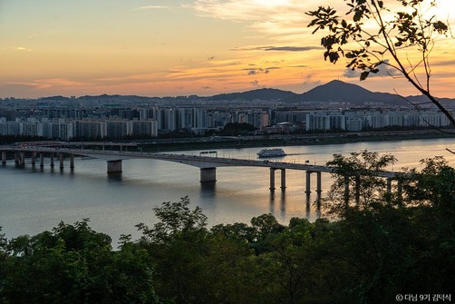 캠핑장의 전망대에서는 한강을 따라 펼쳐지는 풍경과 함께 멋진 노을뷰를 감상할 수 있어요.