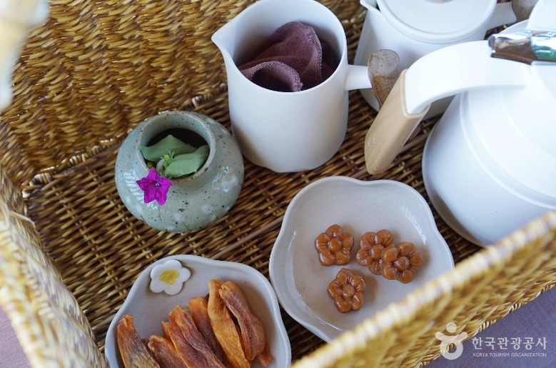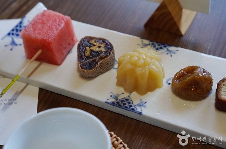 ![]() 차와 함께 주인 내외가 손수 만든 각종 다식을 맛볼 수 있다. |