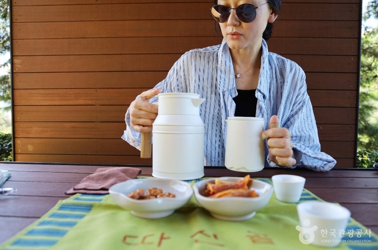 따신골녹차정원에서 편안하고 여유로운 아침 티타임을 가진 뒤 두 번째로 찾아간 다원은 화개면 운수리에 자리한 ‘티카페하동’이다. 하동군에서 직접 운영하는 이곳은 하동의 차를 전반적으로 살펴보고 다도 문화를 체험해볼 수 있는 하동티소믈리에 클래스, 하동의 차에 대한 이해와 흥미의 깊이를 더해주는 하동에피소드 티 클래스, 차와 함께 명상하는 차와 명상, 차와 함께 야외에서 녹차 족욕을 즐기는 녹차족욕 프로그램을 운영한다.