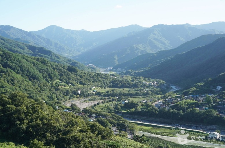 ![]() 화개면 일대. 섬진강과 화개천이 만나 흐르는 이곳은 최적의 차나무 재배 환경을 갖추고 있어 ‘하동야생차산업특구’로 지정됐다. |